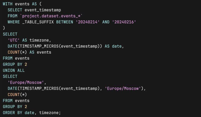 3. So “Monday” in the report and “Monday” in your BQ query are different sets of events. Evening in Moscow is already “next day” in UTC.